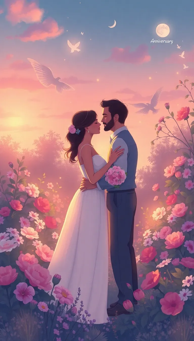Un anniversaire de mariage, c’est comme une étoile qui brille dans le ciel, une douce mélodie qui s’épanouit avec le temps. Chaque année tissée dans le tissu de l’amour est un fil doré qui lie deux cœurs, les unissant dans une danse éternelle. À travers les rires et les larmes, les promesses et les rêves, nous célébrons ce parcours, cette aventure partagée, où chaque instant est un cadeau à chérir. Voici un hommage à ces années de complicité, un poème pour célébrer ce magnifique voyage à deux.