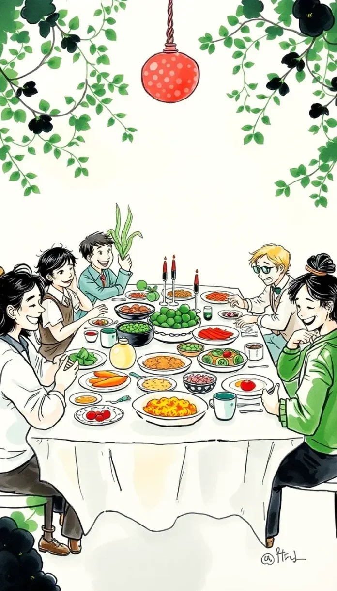 C’est ainsi, au détour de cette table, que les personnages découvrirent le vrai sens de leur amitié : un lien aussi fort que les plats qui les unissaient, renforcé par les émotions et les souvenirs qui les animaient. Dans la douceur d’un repas ensemble, chaque plat était un trésor d’histoires, une célébration de l’amour qui les unissait.