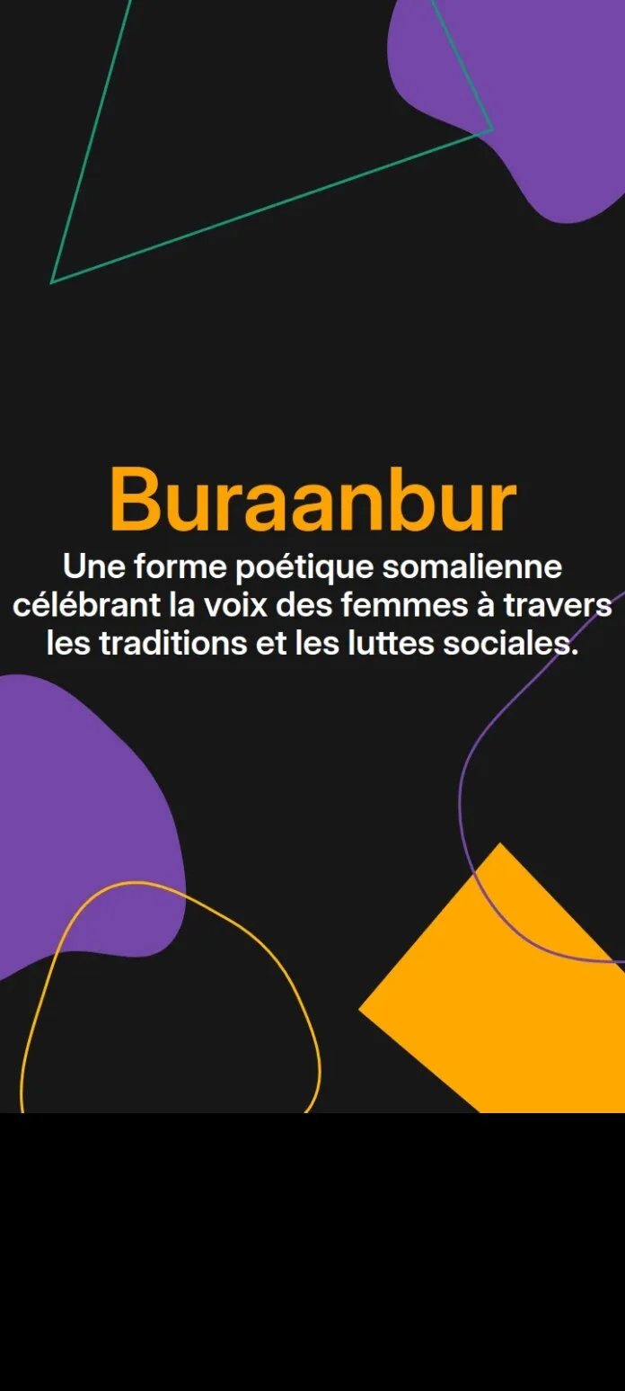Historiquement, le buraanbur a été une partie intégrante de la culture locale en Grande Somalie. Cette forme de vers a été employée durant le mouvement d’indépendance et continue de jouer un rôle important en véhiculant des messages politiques, sociaux et éducatifs, ainsi qu’en sensibilisant le public. Les poèmes composés par Halima Godane, Raha Ayaanle Guled et Hawa Jibril ont été des instruments puissants pour mobiliser les communautés contre les autorités coloniales. Dans ce sens, Jibril a expliqué pourquoi les femmes ont rejoint la lutte contre le colonialisme :