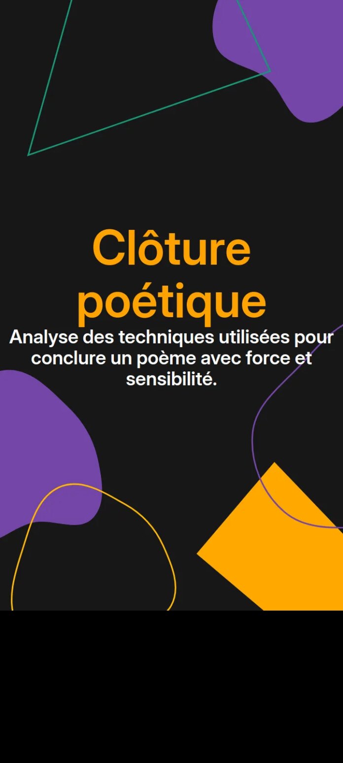 Ce poème illustre la clôture poétique par ses références au silence et à la fin de la vie, créant ainsi une ambiance de conclusion. La rupture des vers renforce le sentiment d’achèvement, tandis que la mention de la nuit et des adieux évoque un sentiment de sérénité face à la mort.