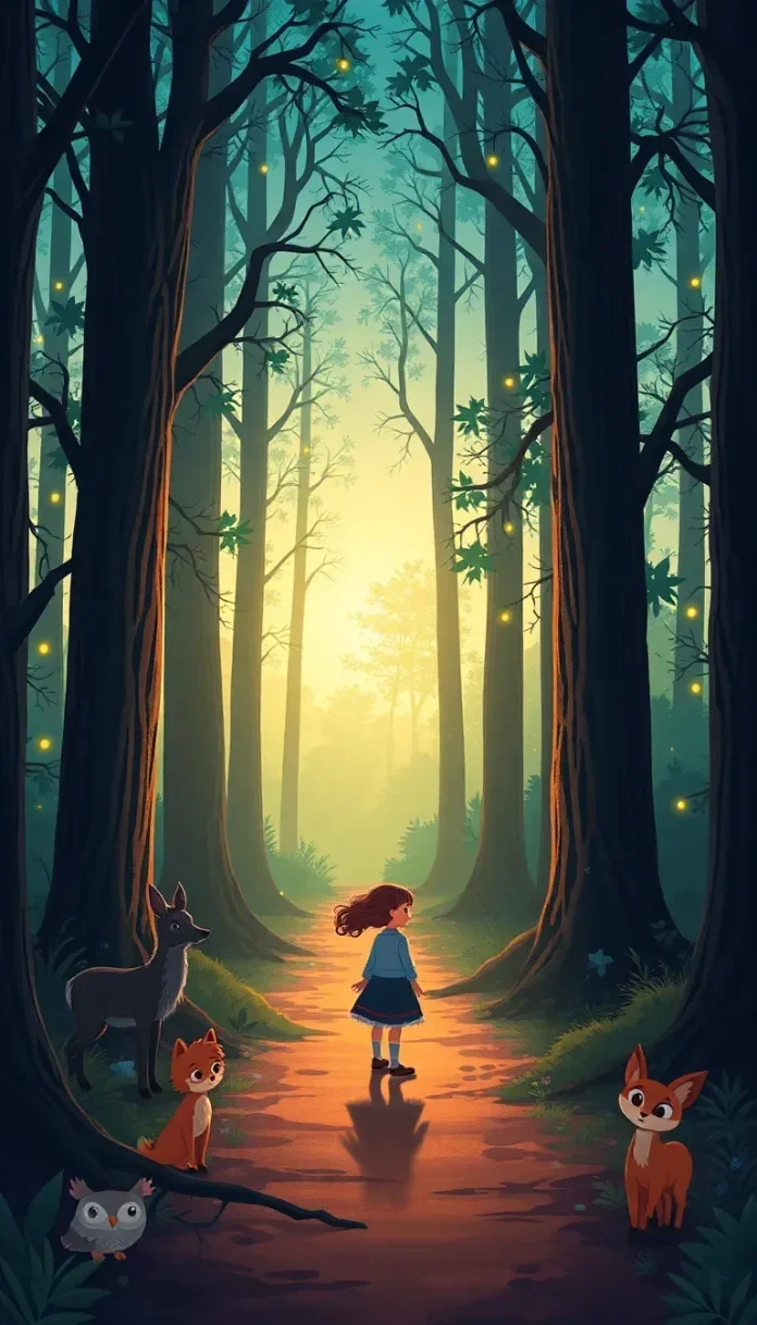 Soudain, au détour d’un bosquet, Emma aperçut trois êtres singuliers. Ils semblaient sortis d’un rêve : les Gardiens de la Forêt. L’un était un cerf majestueux aux yeux lumineux comme des étoiles, l’autre une chouette sage aux plumes argentées, et le dernier un renard à la fourrure flamboyante mais douce comme la soie.