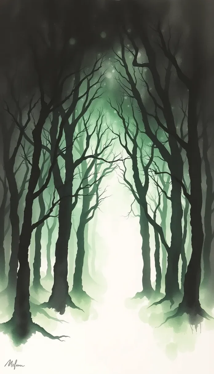 Une forêt drapée de voiles sépulcraux.