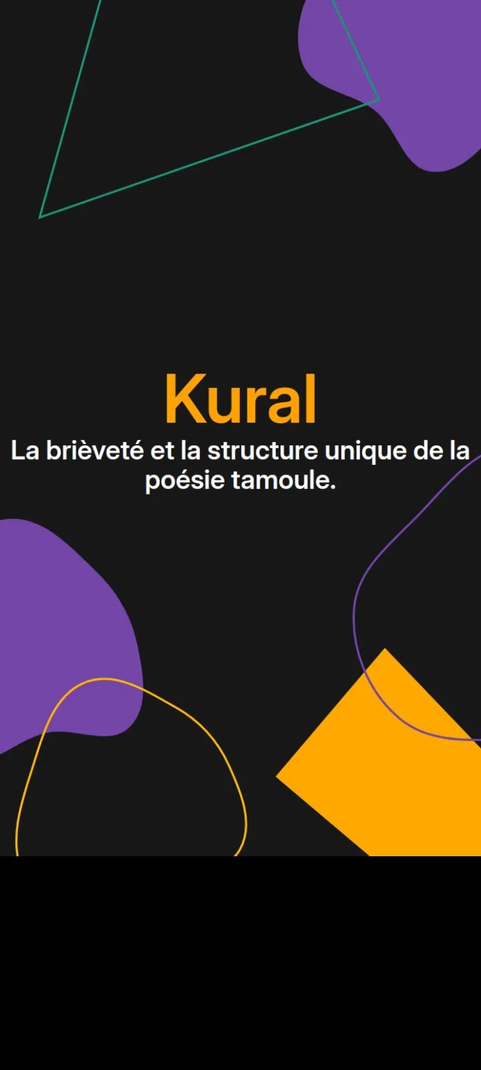 Le Kural est l’une des formes les plus importantes de la poésie classique en langue tamoule. Ce genre poétique se caractérise par sa brièveté, étant composé de couplets indépendants complets en deux vers, le premier vers contenant quatre mots et le second vers trois mots. En tant que l’un des cinq types de strophes de Venpa, il doit également se conformer à la grammaire de Venpa, qui est la structure strophique la plus difficile et la plus estimée de la littérature classique tamoule. Le Tirukkuṛaḷ de Tiruvalluvar, l’une des plus grandes œuvres philosophiques en tamoul, en est un exemple typique.