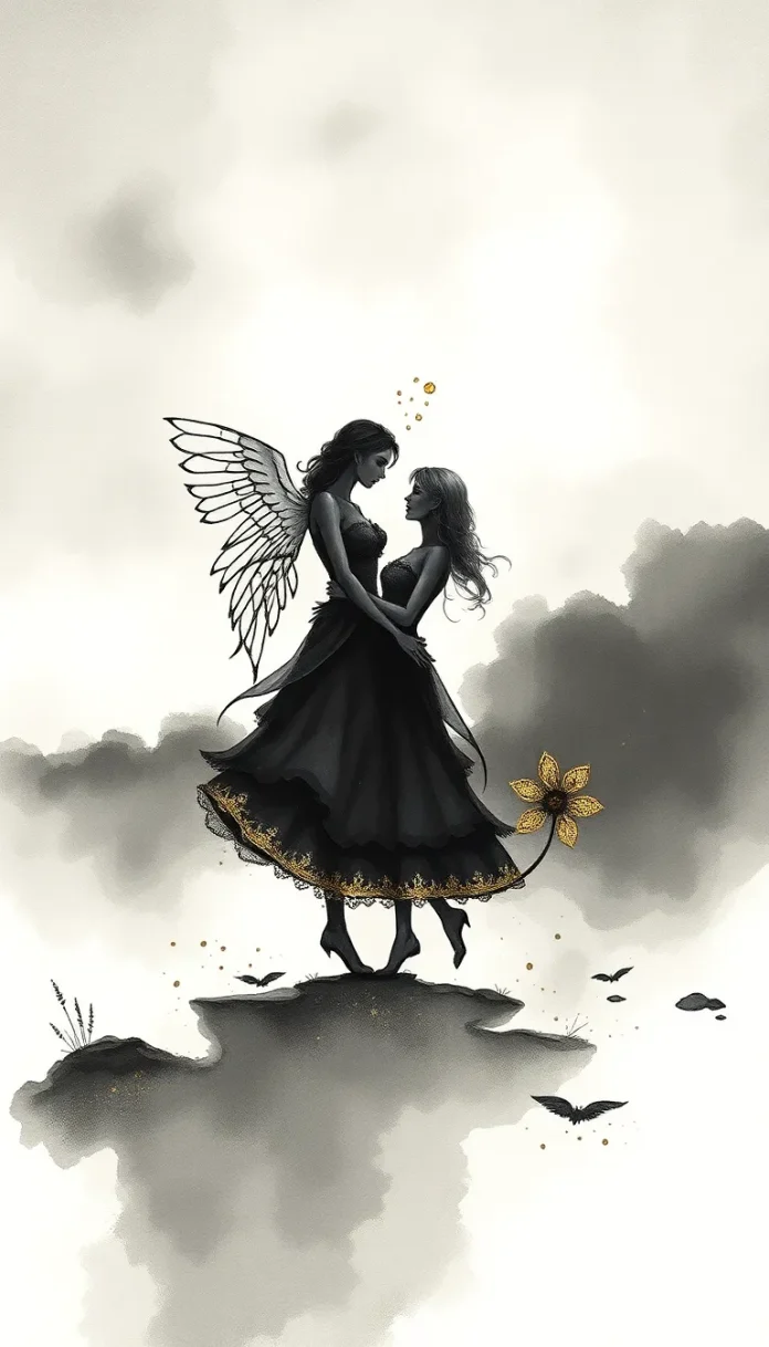 Dans ce paysage onirique, ils se laissèrent emporter par la danse, savourant l’instant présent tout en étant conscients de leur passé et de leur futur. Ils n’étaient pas seulement des amants, mais des âmes liées, témoignant de la beauté d’une connexion qui défie le temps. À mesure qu’ils tourbillonnaient, ils comprenaient que leur histoire était l’écriture même de l’univers, une poésie éternelle qui ne connaissait ni début ni fin.