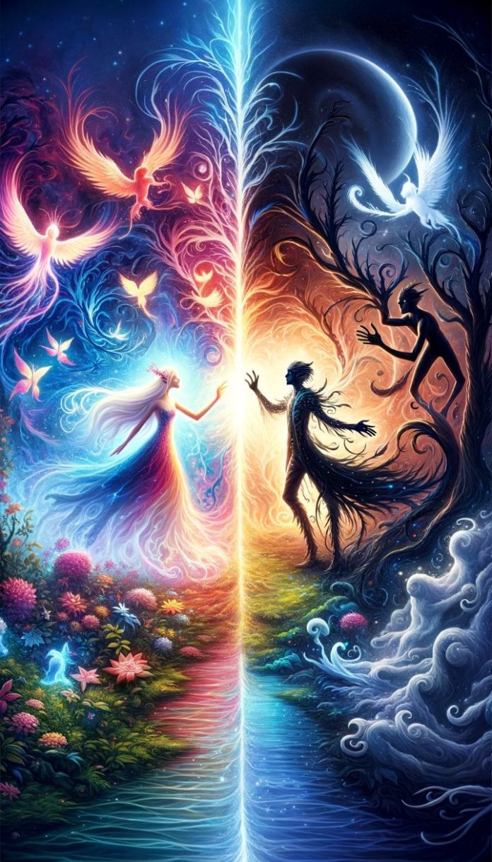 Découvrez un récit fascinant où la fantaisie se mêle à la profondeur de l’amour et de la dualité existentielle. « Entre Lumière et Ténèbres » raconte l’histoire captivante de la Reine des Elfes et du Prince des Ombres, deux êtres aux antipodes qui s’entrelacent dans une danse d’amour éternel. À travers leur voyage, nous explorons les nuances de la vie, la force de l’amour face aux obstacles, et la beauté qui réside dans l’union des contraires. Un poème qui vous transportera dans un monde où chaque vers résonne avec la puissance des sentiments les plus purs.