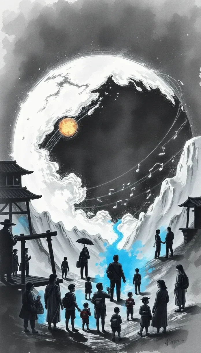 Dans ce silence éphémère, une mélodie douce et lointaine s’éleva, telle l’écho d’un souvenir, s’entrelaçant avec la brise du soir. Ce chant probable et fugace résonna comme une promesse : celui d’un éveil spirituel, d’un voyage partagé, prêt à embrasser des horizons encore inexplorés.