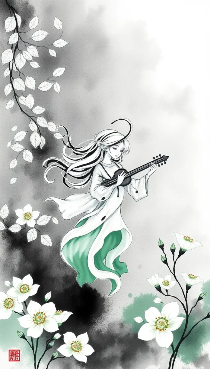 D’un pas tranquille, elle quitta le jardin, portant dans son souffle intérieur cette mélodie unique, un lien immuable entre elle, ses émotions, et le vaste monde. Et alors, sous la nuit naissante, une invitation muette s’éveilla en elle : poursuivre ce dialogue intime, murmurer à son tour la beauté fragile et passagère de cette musique aux cœurs qui veulent entendre.
