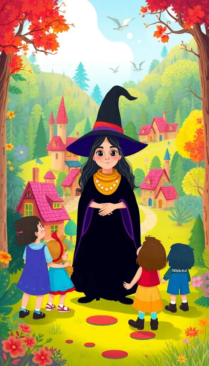 À l’écart, Lila, une jeune fille à la chevelure dorée comme les rayons du soleil, les observait avec un sourire pensif. Elle ressentait un profond désir de rencontrer cette sorcière légendaire, car dans son cœur, elle savait qu’elle pouvait apporter quelque chose de spécial au village. Après tout, quelle joie serait d’avoir une potion qui unirait tous les enfants, dissipant la méfiance et éveillant l’esprit d’amitié!