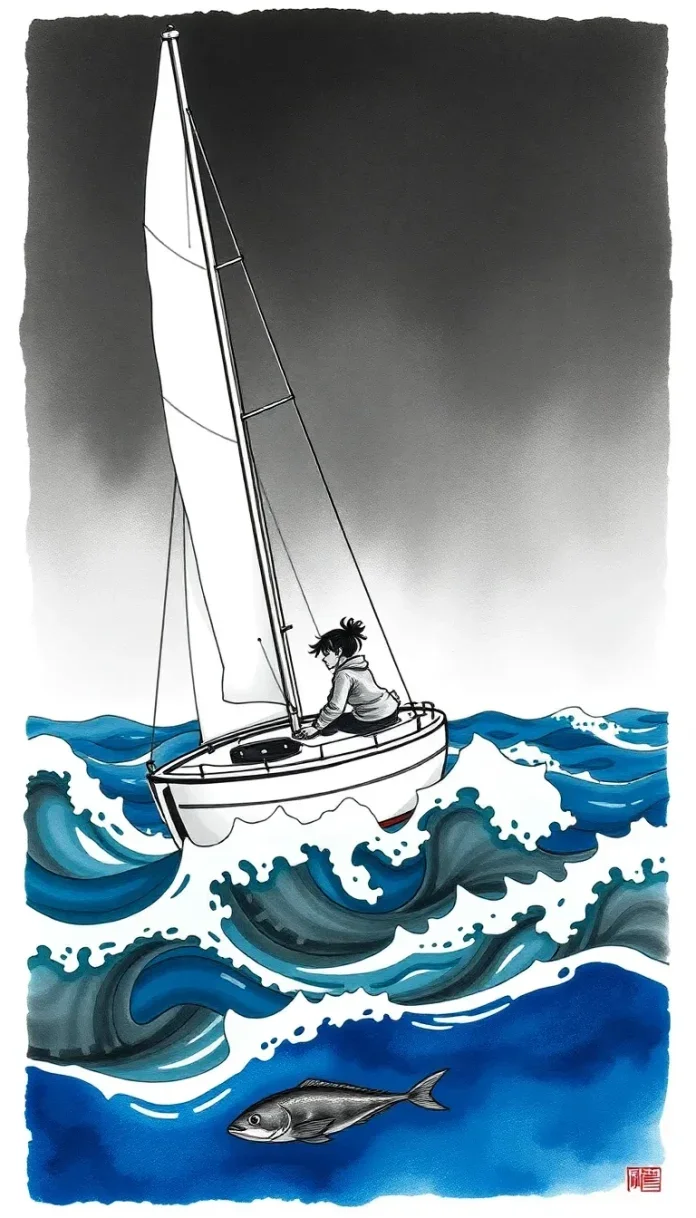 Chaque crépuscule, alors que la lumière déclinait lentement derrière l’horizon, Camille se retrouvait seule sur son voilier, bercée par le doux murmure des vagues. La mer, autrefois source de réconfort, s’était transfigurée en un oracle, lui dévoilant des visions troublantes d’un monde à la dérive. Chaque soir, les échos de l’océan semblaient résonner plus fort, des plaintes de créatures marines perdues dans un océan de déchets, des plages souillées qu’elle reconnaissait, auparavant propices à la vie.