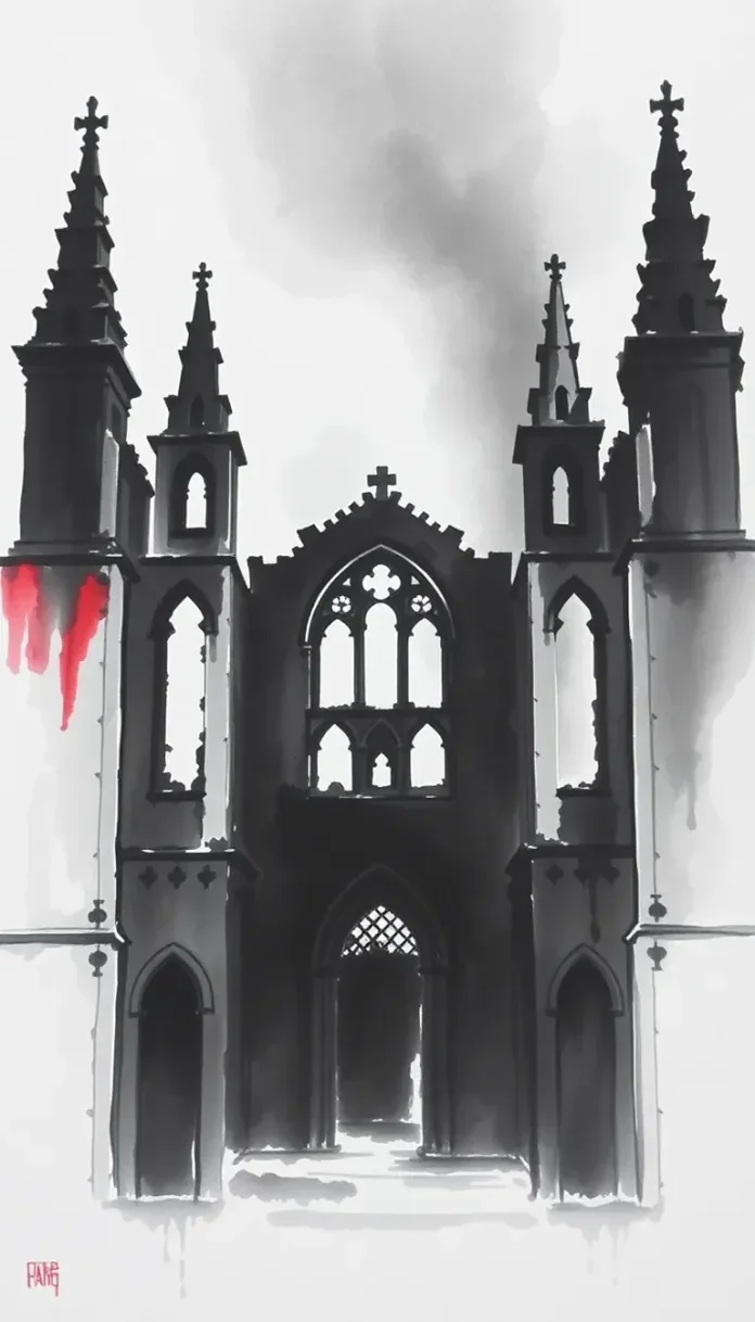 La cathédrale tremble, ses arches éclatées,