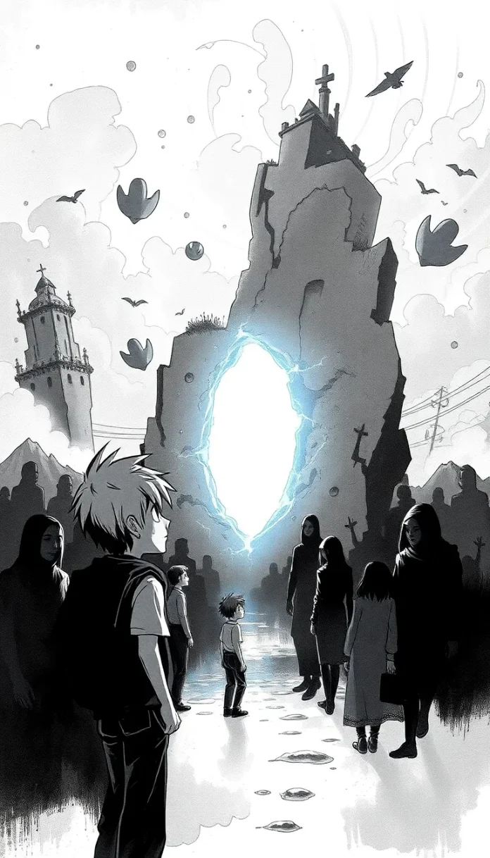 Il se rapprocha du portail, son cœur battant à tout rompre, et, avec une respiration profonde, il s’engouffra à l’intérieur. L’air autour de lui se transforma, tout semblant s’illuminer puis s’éteindre, comme une étoile se noyant dans l’obscurité. Lorsqu’il émergea dans cet espace éthéré, il sentit immédiatement l’empreinte de la peur, du désespoir, mais aussi une sensation réconfortante d’être dans un lieu où il pourrait enfin donner un sens à sa propre existence.