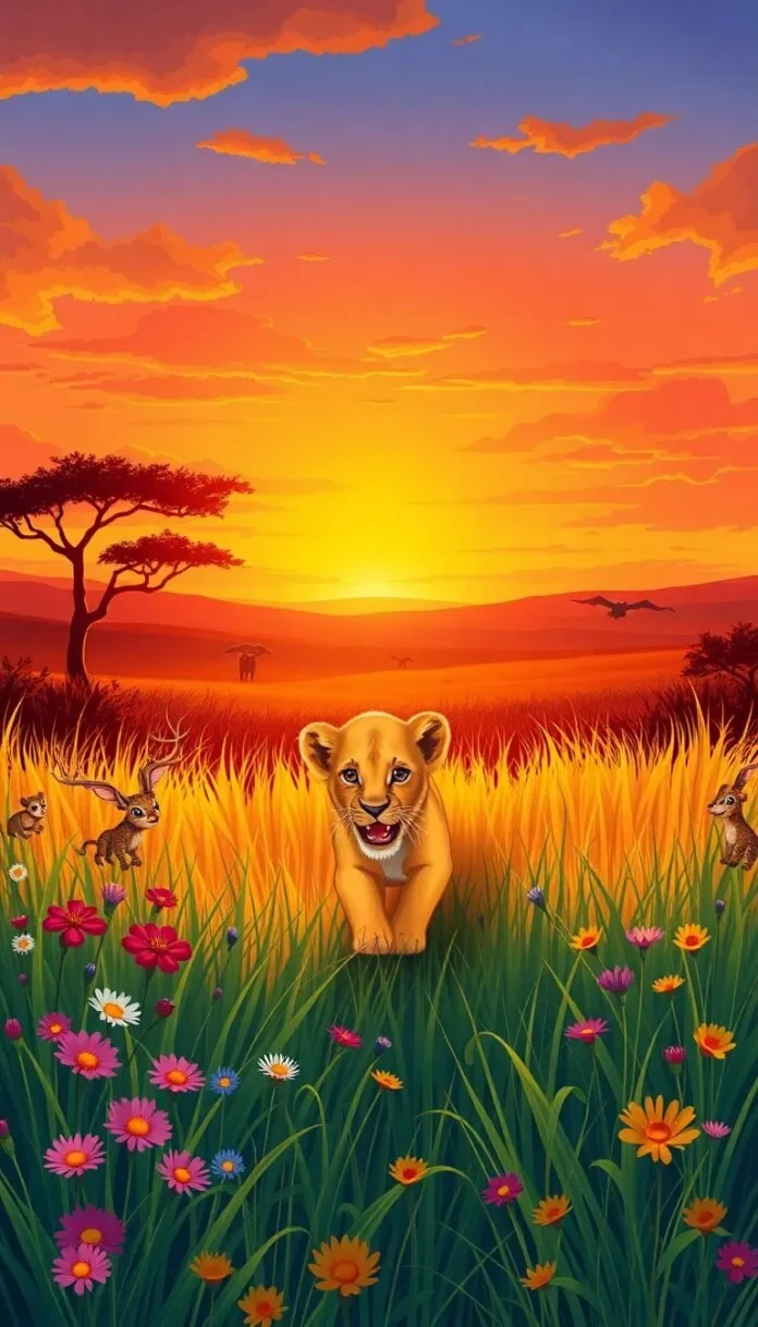 Chaque matin, au lever du soleil, la savane vibrante et dorée reflétait la détermination dans le cœur de Leo. Le petit lion, avec ses yeux brillants, se tenait au milieu des herbes hautes, prêt à relever un défi qui le faisait rêver : apprendre à rugir comme son père, le majestueux Mufasa. Leo savait que pour devenir un grand roi, il devait soulever sa voix avec force et courage.