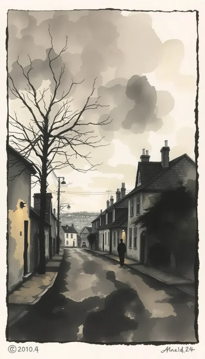 Là, au cœur d’un village oublié, se meurt la lueur d’une aube incertaine,