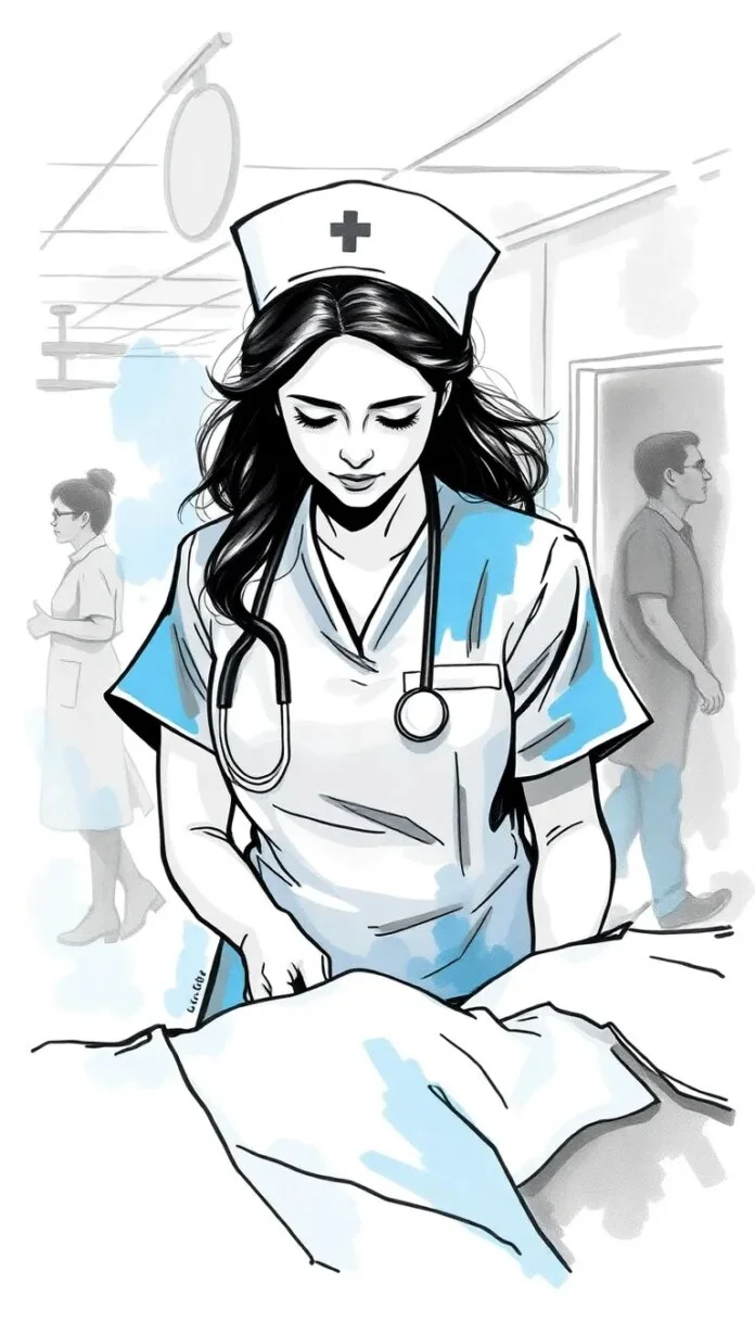 Chaque matin, elle savait que sa mission était d’apporter la lumière dans la noirceur de la souffrance humaine. Déjà, elle pouvait ressentir le poids de la journée à venir, une journée pleine de défis éreintants auquel elle devait faire face avec courage et compassion. Ses mains aux doigts longs et fins, marquées par le temps, se posèrent avec douceur sur sa tenue d’infirmière, symbole de sa vocation, et elle prit une grande inspiration, se préparant à une nouvelle bataille.