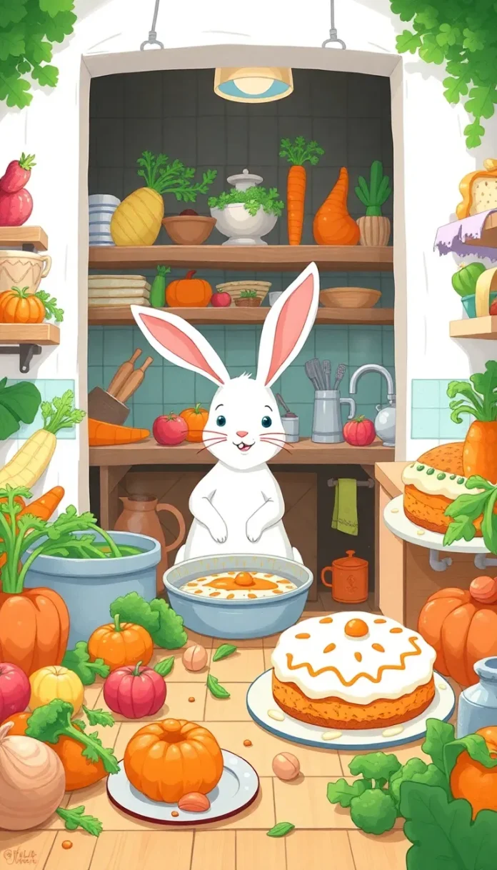 C’était une belle journée ensoleillée, et Bouboule, le lapin aux longues oreilles, était déterminé à impressionner ses amis avec un succulent pâté de carottes. Dans la cuisine, des carottes de toutes tailles s’étalaient sur la table, tandis que l’arôme doux des légumes frais flottait dans l’air. « Aujourd’hui, je vais préparer le meilleur pâté de carottes de l’histoire ! » s’exclama-t-il avec enthousiasme.
