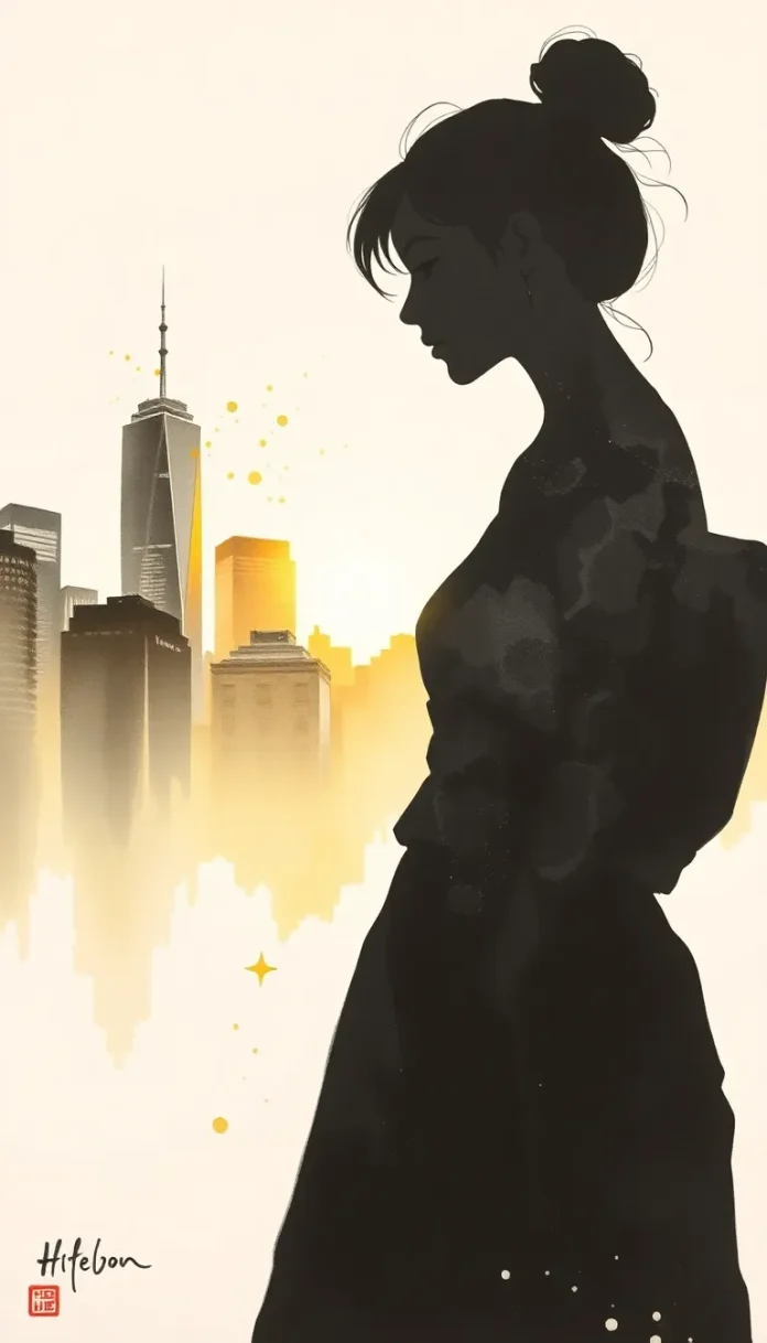 Dans la fraîcheur d’une aube incertaine, notre héroïne se tient devant l’immensité d’une métropole moderne, où l’ombre des gratte-ciel se mêle aux premières lueurs d’un jour prometteur. Elle est ce qu’on décrit sans fausse note : a determined young woman with bright eyes and stylish modern attire; a supportive friend with a confident smile. Son regard ardent se perd dans l’horizon, comme si chaque rayon de soleil portait en lui l’espoir d’une vie meilleure.
