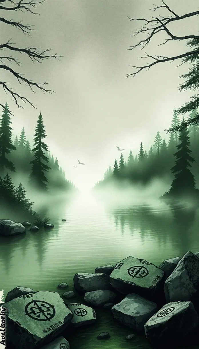 Le sentiment d’émerveillement qui illuminait leurs découvertes fut bientôt assombri par une appréhension sourde. La nature elle-même semblait complice : les arbres dénudés au bord de l’eau, où le vent sifflait comme un avertissement ancien, et le reflet du lac, scintillant sous la brume dense, donnaient l’impression d’un gouffre insondable, prêt à engloutir ceux qui oseraient trop s’approcher.