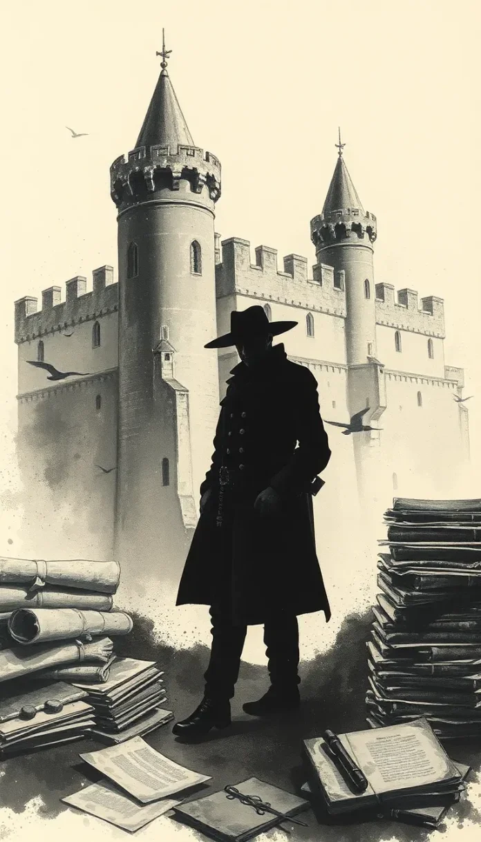 Au cœur d’une nuit d’orage, l’archiviste se retrouve face à face avec l’incarnation même du mystère. Dans une salle secrète du château, dont les murs semblent avoir absorbé les confidences de siècles, il aperçoit une silhouette en retrait. Celle-ci, esquissée par la lueur vacillante d’une bougie, incarne l’âme vagabonde d’un amour défendu et oublié.