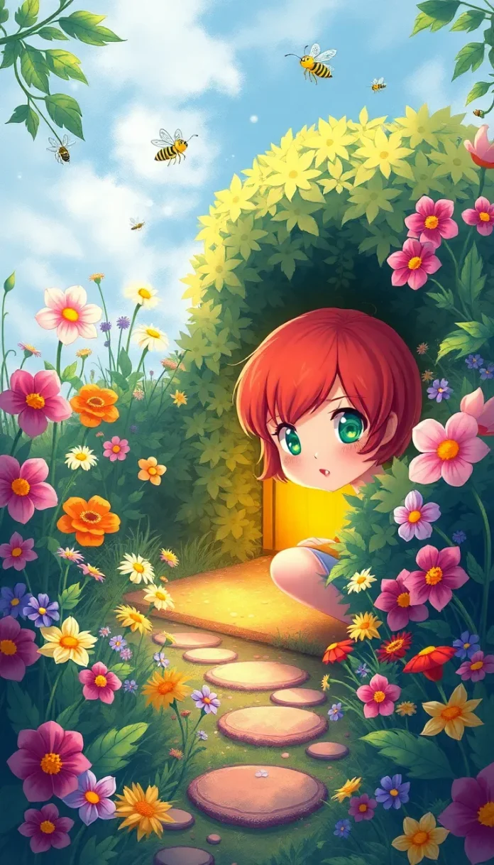Dans un petit village aux maisons colorées, se trouvait un magnifique jardin, rempli de fleurs éclatantes qui dansaient sous la brise légère. Ce jardin appartenait à la grand-mère de Lila, une petite fille aux cheveux roux courts et aux yeux verts pétillants. Chaque jour après l’école, Lila s’y aventurait, émerveillée par la magie qui flottait dans l’air.