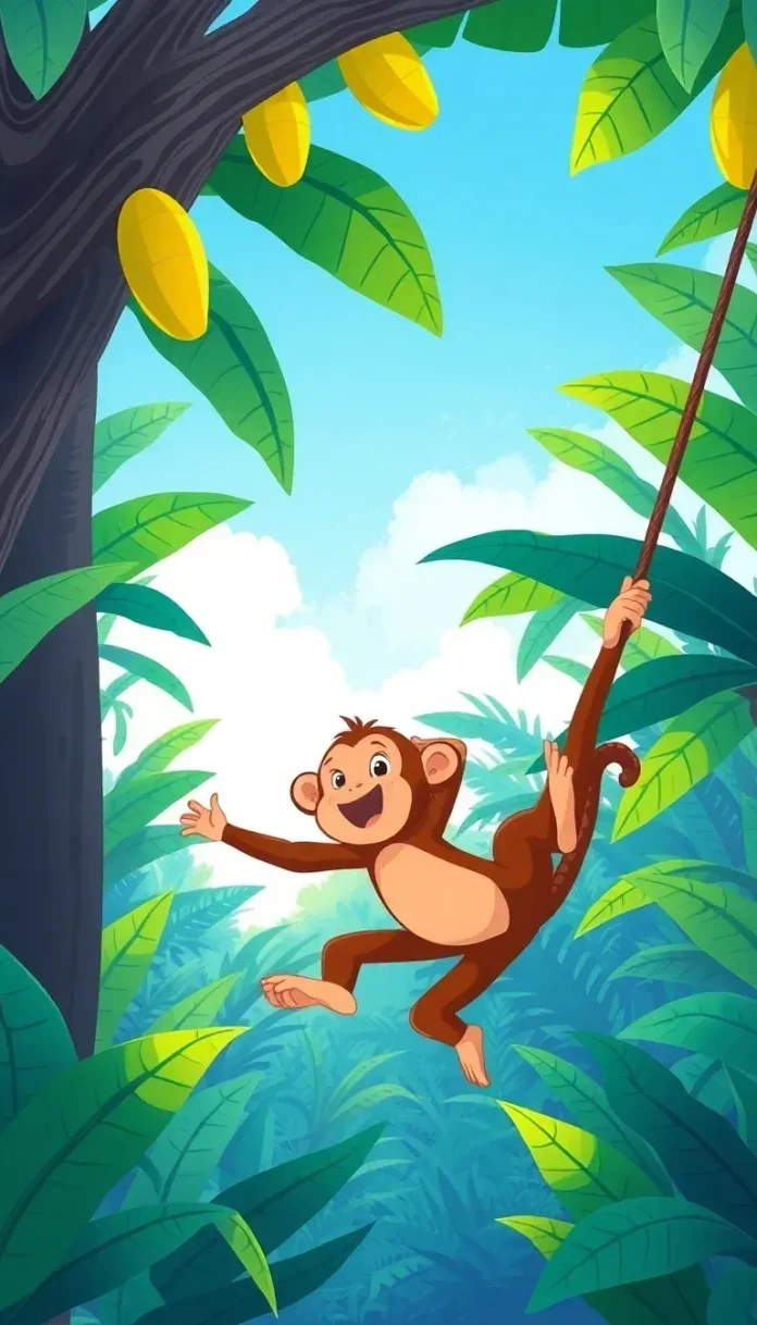 Dans une jungle luxuriante, où les arbres dansaient sous la brise légère et où le soleil jouait à cache-cache avec les feuilles, vivait un petit singe curieux appelé Milo. Avec son pelage brun brillant et ses yeux vifs, il était toujours prêt à plonger dans l’aventure, attiré par chaque son et chaque couleur qui l’entouraient.
