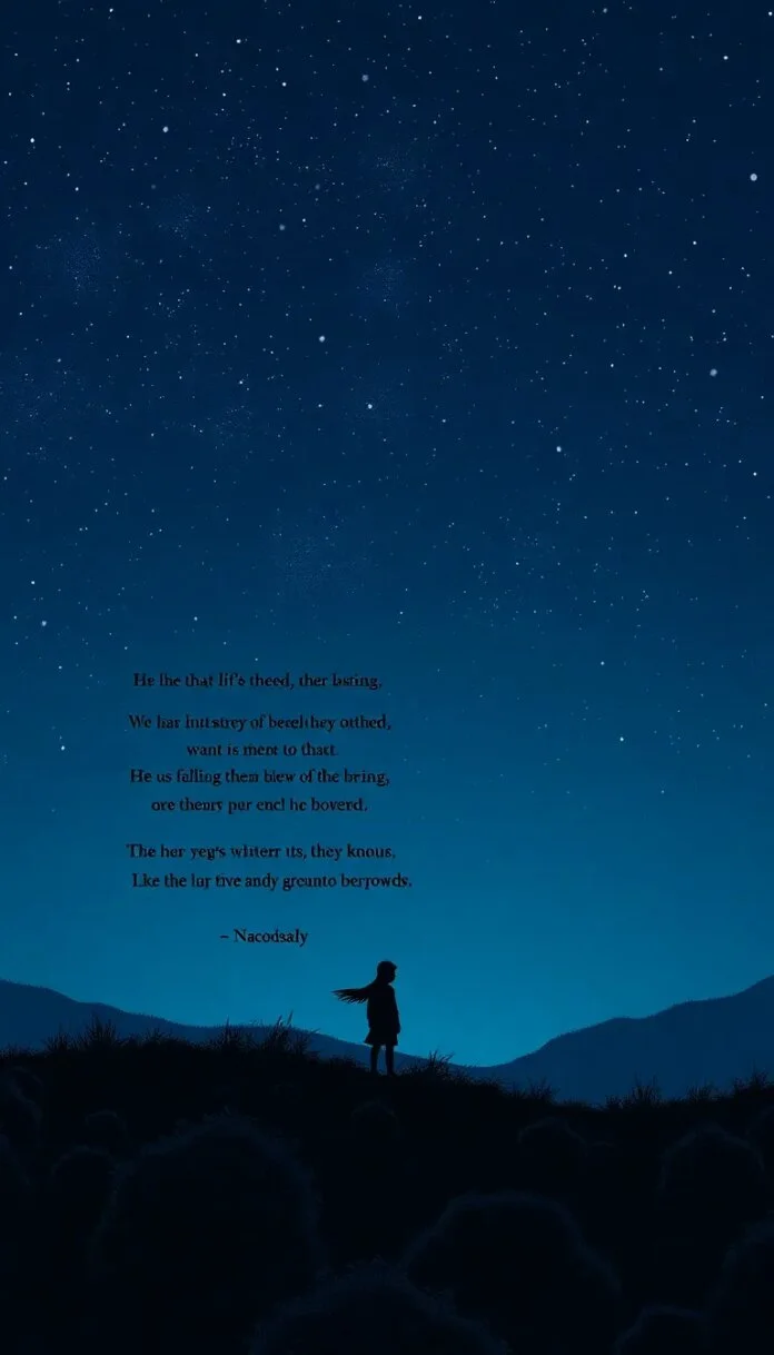 Dans le silence de la nuit, où les ombres s’étirent, la solitude s’installe comme un vieux compagnon. Elle chuchote aux âmes en quête de réconfort, tissant des fils d’argent entre les pensées et les rêves enfuis. Ce poème, miroir de l’isolement, explore les recoins de ce sentiment, balayant les nuances du cœur ; il célèbre la beauté amère de la solitude, une mélodie douce-amer qui résonne en nous tous.