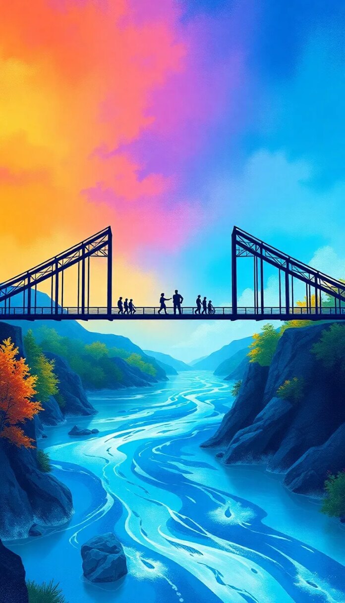 Dans le doux souffle du matin, un pont majestueux s’étire,