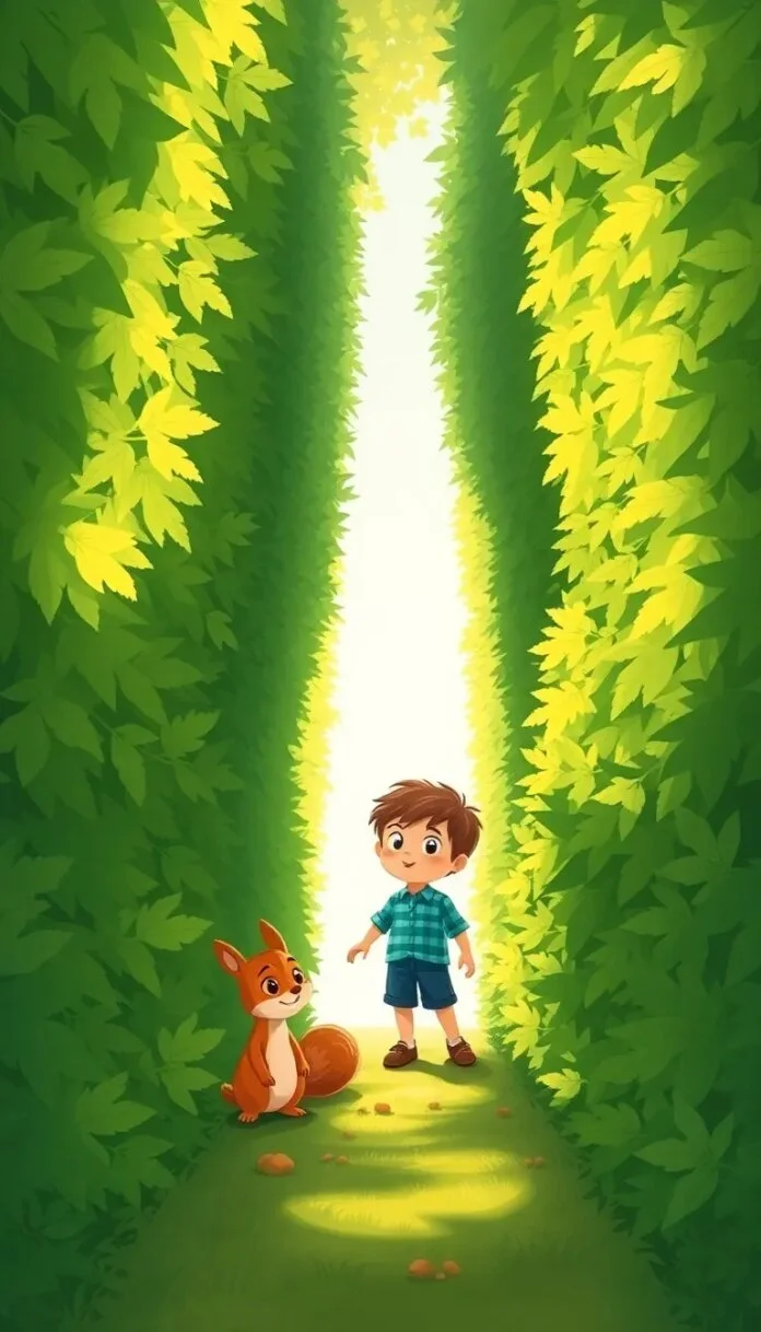 Alors qu’il s’avançait, il découvrit un étrange labyrinthe fait de plantes hautes comme des tours. Les feuillages denses formaient des murs verdoyants, presque magiques. Sam, intrigué, s’approcha. Son cœur battait un peu plus vite, partagé entre l’excitation et un léger tremblement de peur. « Que puis-je bien trouver là-dedans ? » se demanda-t-il.