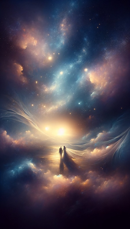 Dans la danse du destin, les cœurs trouvent leur chemin, guidés par les murmures du vent et le scintillement des étoiles. Chaque rencontre, chaque regard échangé, est un fil doré dans le grand tissu de l’univers. Cette histoire d’amour, tissée par le destin, nous rappelle que dans la vaste étendue de l’existence, chaque instant partagé est un trésor, et chaque amour véritable est un reflet de l’infini. C’est dans cette quête de connexion, dans ce voyage à travers les miroirs de l’âme, que nous découvrons la véritable essence de notre être