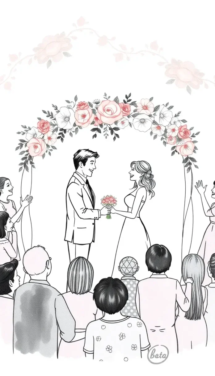 Un souffle collectif se fit entendre lorsque Chloé apparut, resplendissante, telle une apparition angélique au milieu des fleurs. Tous les regards se braquèrent sur elle, leurs cœurs battant à l’unisson, captivés par la beauté du moment. Alors qu’elle s’approchait de lui, il lut dans ses yeux cette même flamme qui l’avait épris des années auparavant.