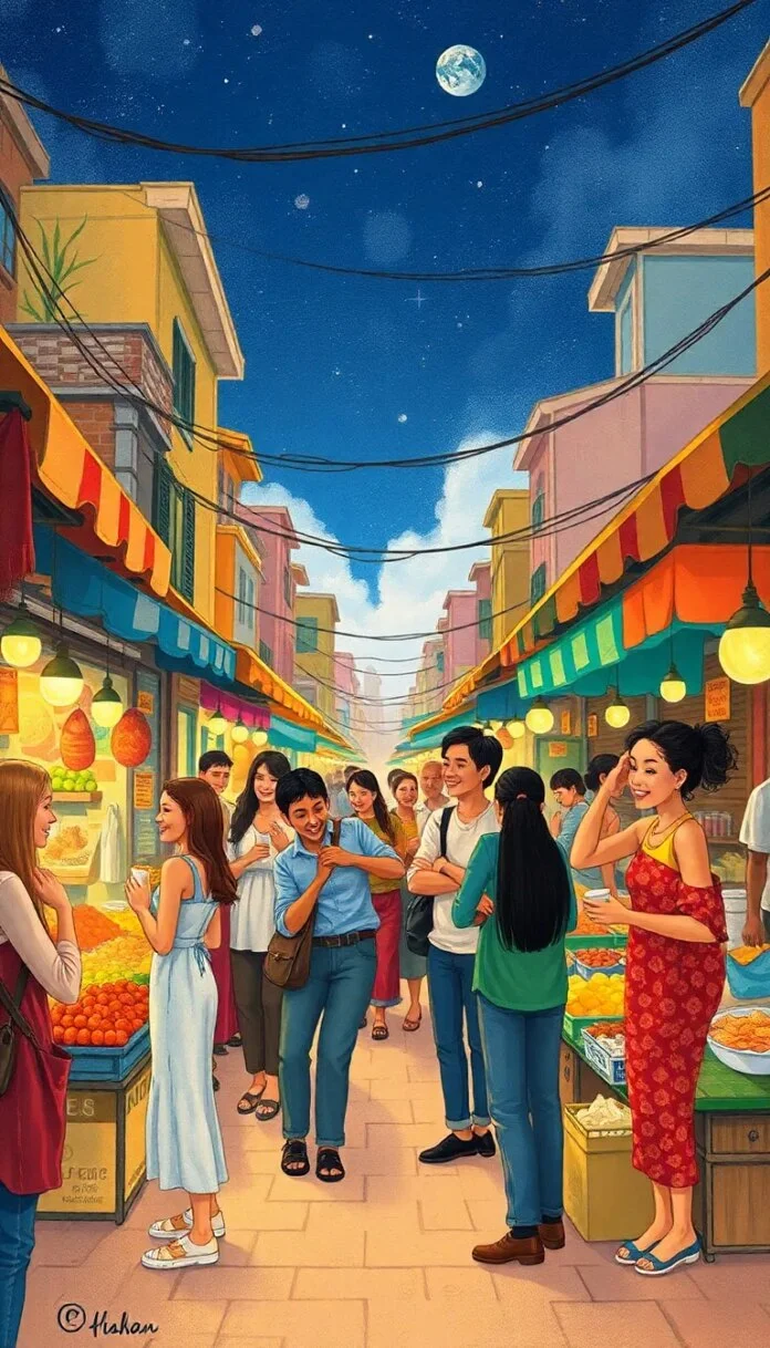 Dans les flammes d’un marché vibrant d’histoires,